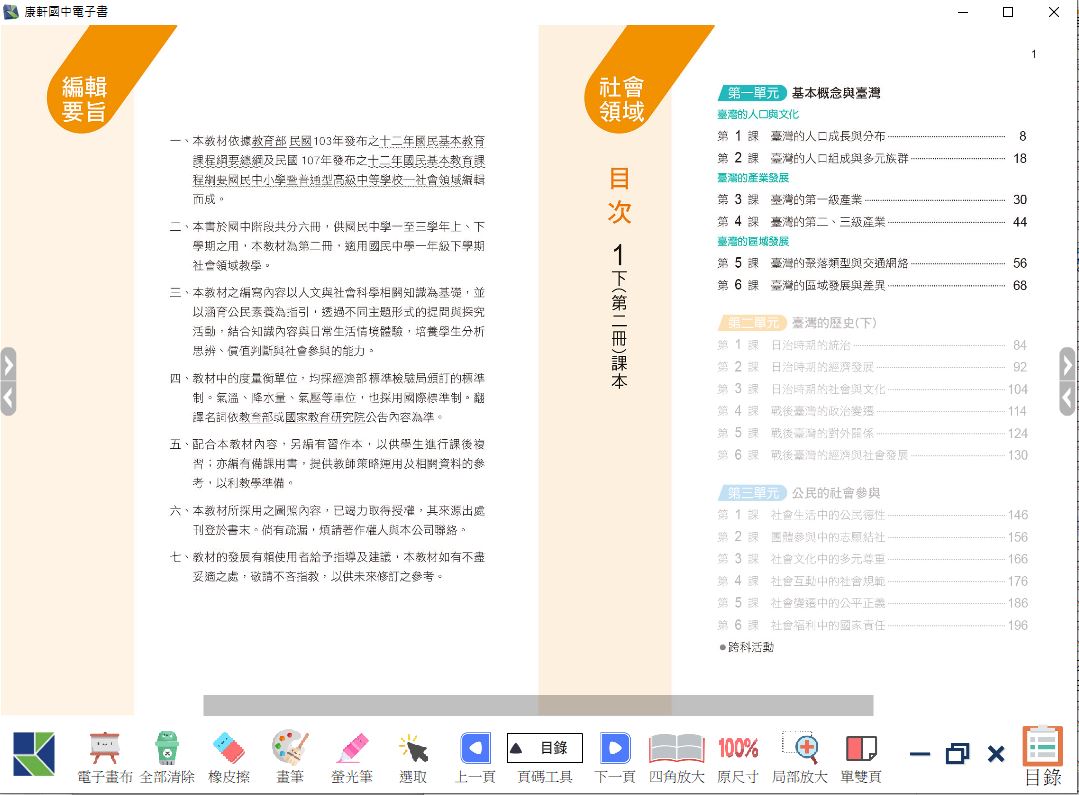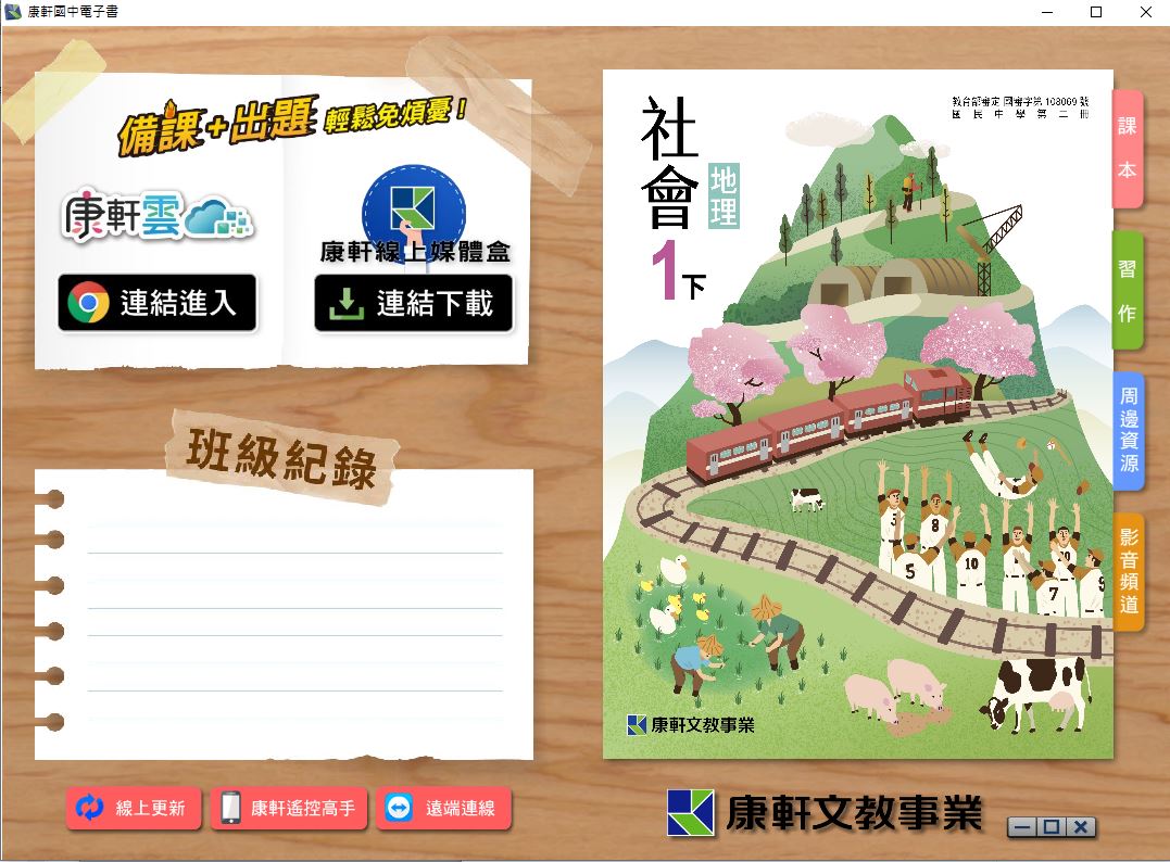 108學年下學期 國中 康軒版 地理電子書 1年級(含課本、習作含解答)教學光碟DVD版
