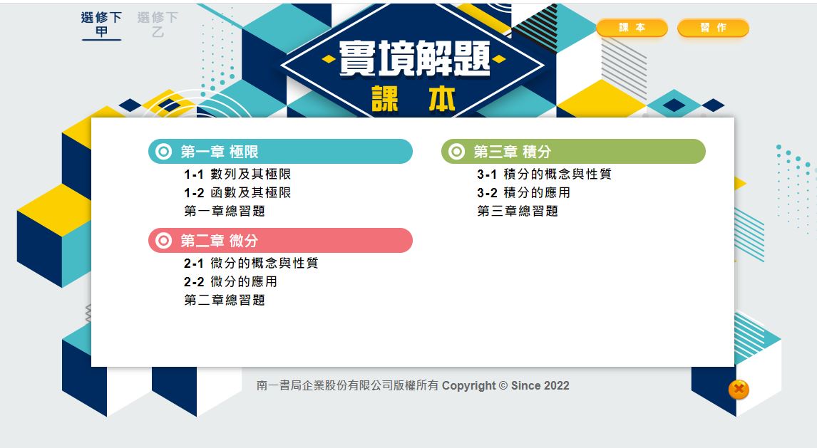 111學年下學期 高中 實境解題 南一版 數學科 3年級 教學光碟