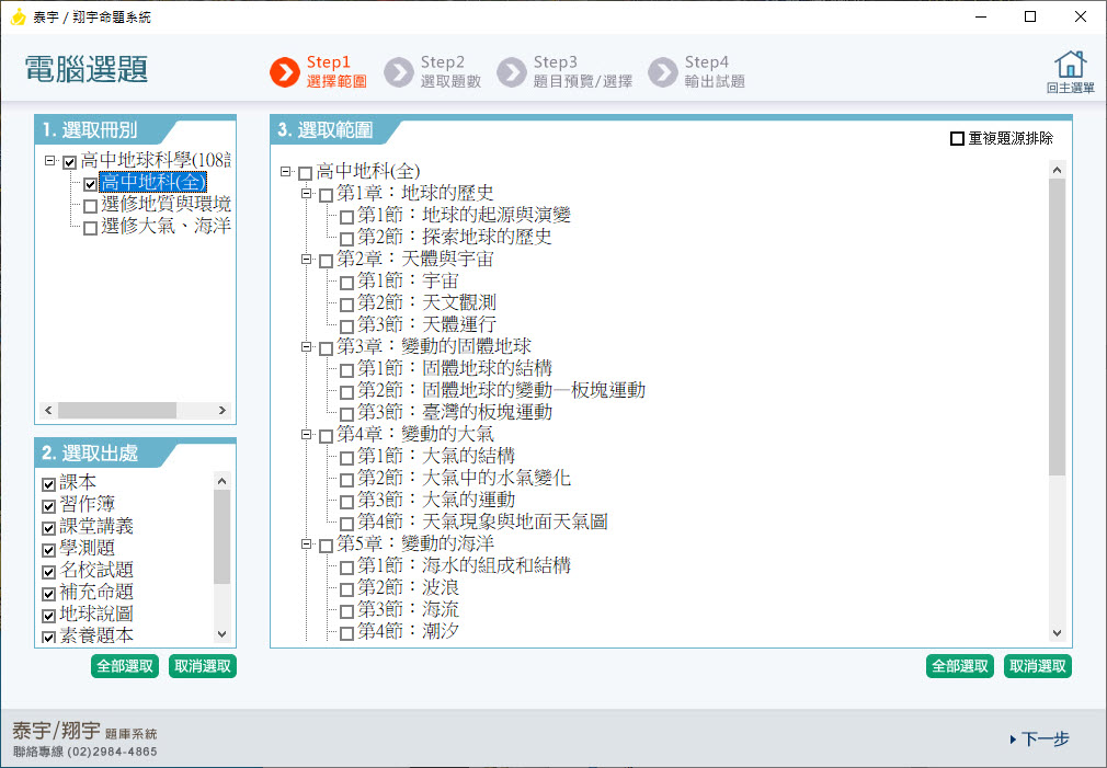 112學年上學期 高中命題光碟 泰宇版 地球科學(全、選修地質與環境、選修大氣、海洋及天文)(108課綱)題庫光碟